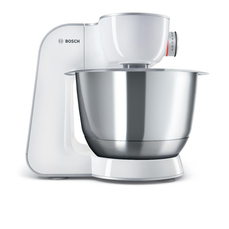 Součástí výbavy kuchyňského robotu Bosch MUM58231 je velká nerezová mísa o objemu 3,9 l, do níž se vám pohodlně vejde až 1,9 kg kynutého těsta nebo 2,7 kg piškotového těsta. Mísa je speciálně tvarovaná tak, aby co nejlépe vyhovovala pohybu nástavců. To nejlepší těsto vám zajistí 3D planetární systém pohybu, který nechává nástavce otáčet po vlastní ose a zároveň i po ose převodovky. Veškerý obsah mísy bude tedy vždy kvalitně a rovnoměrně promíchán.