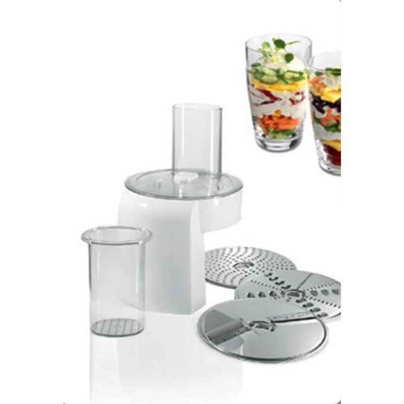 Praktické příslušenství kuchyňského robotu Bosch MUM58231 obsahuje šlehací a míchací metlu, hnětací hák, kvalitní mlýnek na maso, mixér o objemu 1,25 l a šikovný průběhový krouhač se 3 různými nástavci. Díky tolika možnostem využití je kuchyňský robot Bosch MUM58231 ten nejlepší pomocník pro každého domácího kuchaře.