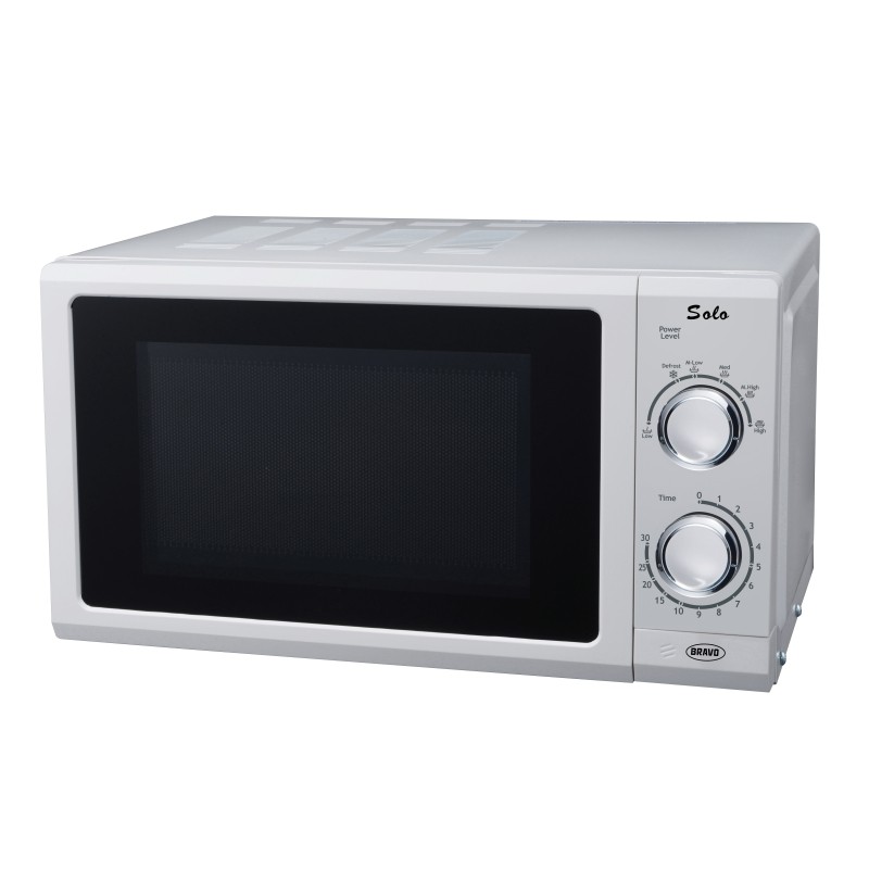 Bílá mikrovlnná trouba Bravo Solo B-4992 o objemu 25l. Nabízí klasický mikrovlnný ohřev a rozmrazování. Nechybí ani praktický časovač 30 minut.