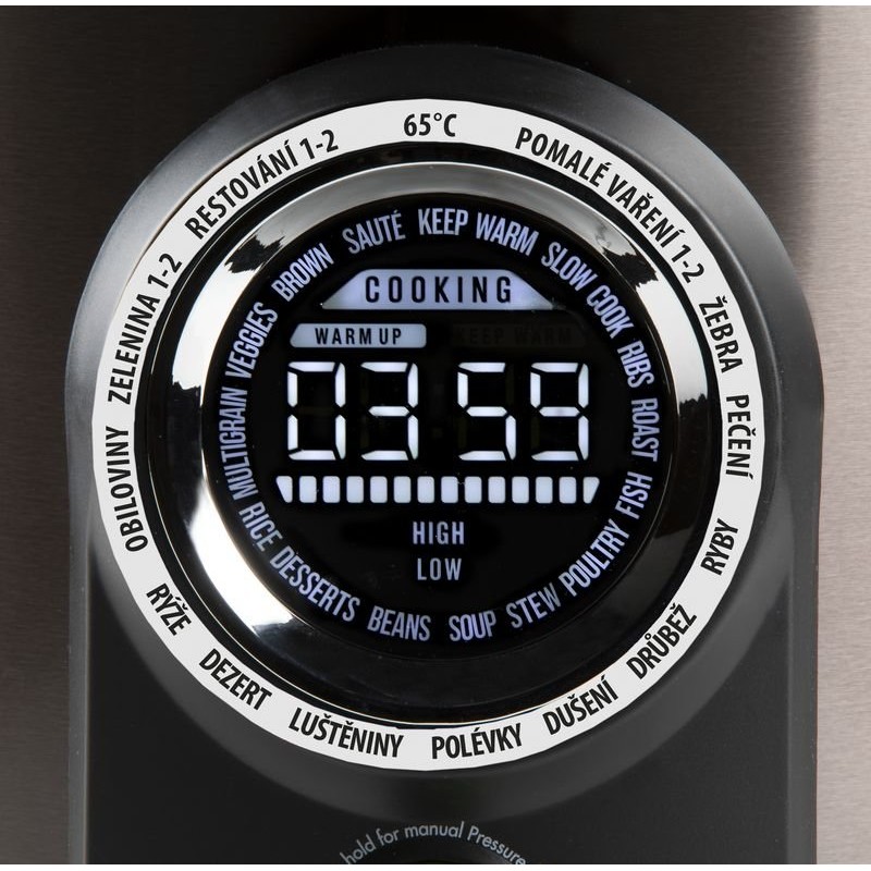 - Zobrazení zbývajícího času u programů pro vaření (odpočet času se spustí až po dosažení správného tlaku a teploty vaření)