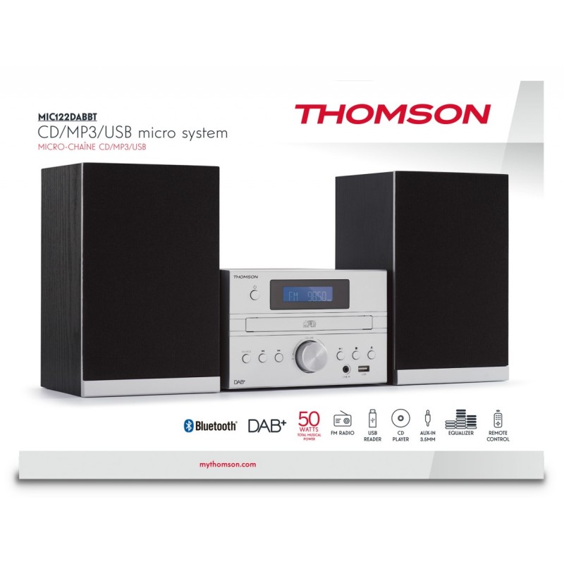 Thomson MIC122DABBT je mikrosystém, který udělá radost každému. Můžete poslouchat klasické rádio FM, nebo naladit nový formát DAB+. Přehrajete svoje CD, ale také hudbu uloženou na flash disku připojením do USB vstupu. Chcete přehrávat písničky uložené ve Vašem mobilu? Připojte se bezdrátově přes Bluetooth a pořádně to rozjeďte!
