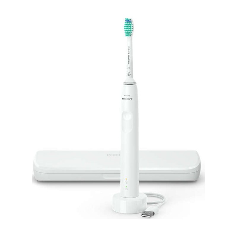 Ergonomický a tenký design kartáčku Philips Sonicare 3100 zajistí při čištění komfortní uchopení. Je vybaven baterií, která na jedno nabití vydrží až 14 dní. Doporučení vyměnit kartáčkovou hlavici tak, abyste stále dosahovali ideálních výsledků, vám pohlídá technologie BrushSync se zvukovým signálem, která kontroluje dobu a způsob čištění zubů. V balení Philips Sonicare 3100 naleznete kromě sonického kartáčku praktické cestovní pouzdro a nabíjecí USB základnu.